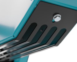 vermeidet Verstopfungen durch Holz- und Rindenreste. Ein vorgeschriebenes Schutzgitter, das bei HMG Kreissägen nicht verschweißt wird, kann zur Reinigung abgenommen werden.